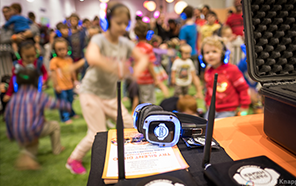 - Equip yourself with high-quality wireless headphones that feature up to 10 channels. Thus, everyone can choose what they dance to.