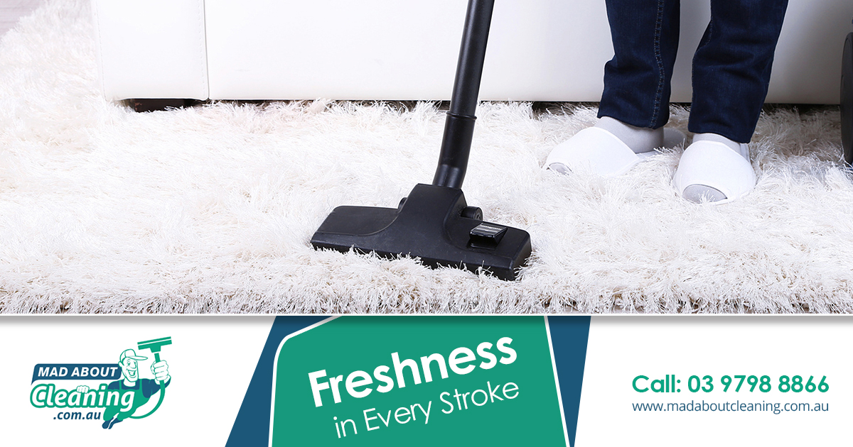 At Mad About Cleaning, we carry a step by step process with immense attention to detail while performing our carpet cleaning job in Melbourne. Our carpet treatment ensures safety against Flea and Dust mite reproduction by application of special and non-toxic chemical powders. To know more visit https://www.madaboutcleaning.com.au/services/carpet-cleaning/ or connect with us on 03 9798 8866 / 0435 811 838 / 0405 161 424.