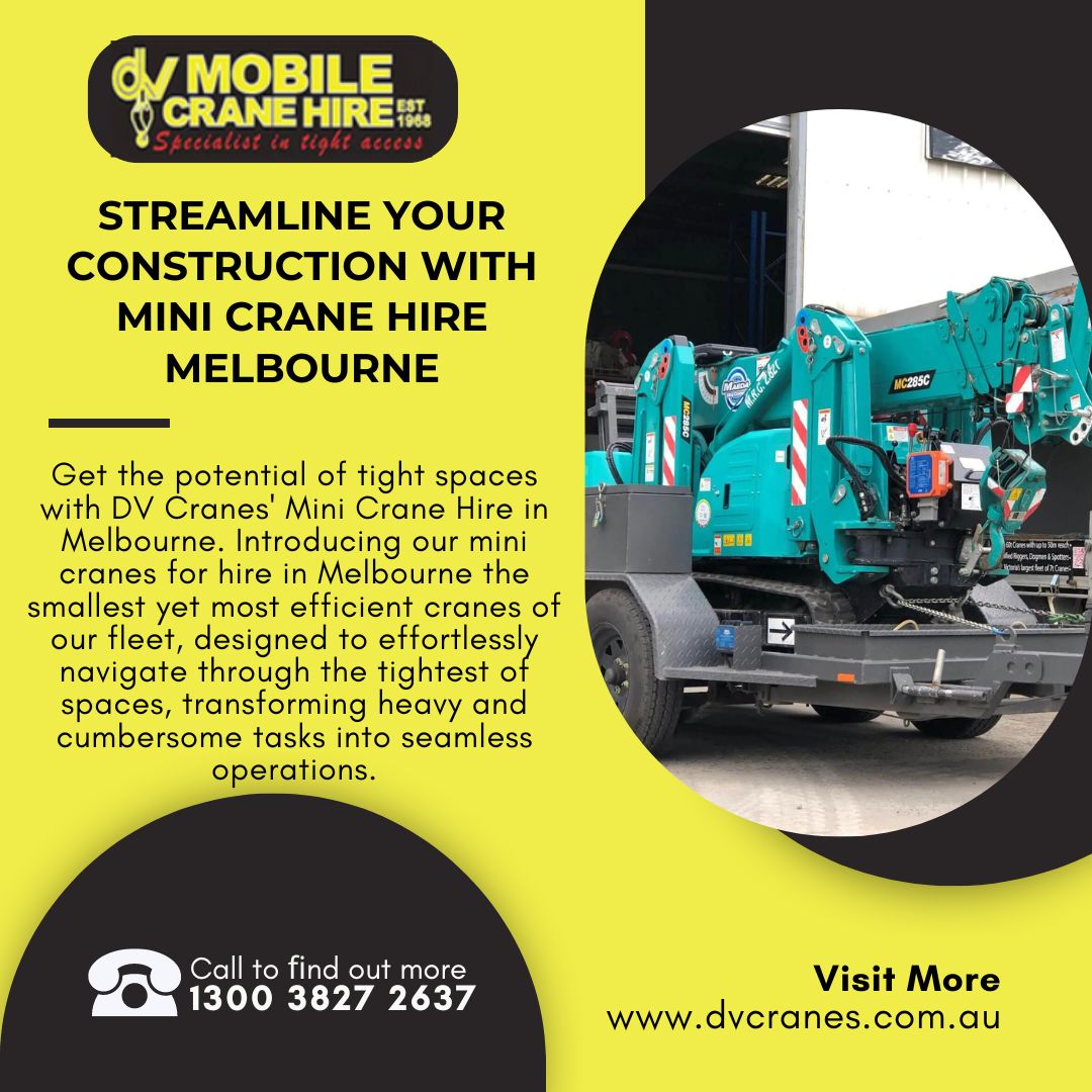 Choose DV Cranes for a reliable and hassle free mini crane hire experience in Melbourne. Let's lift the weight off your shoulders, together.